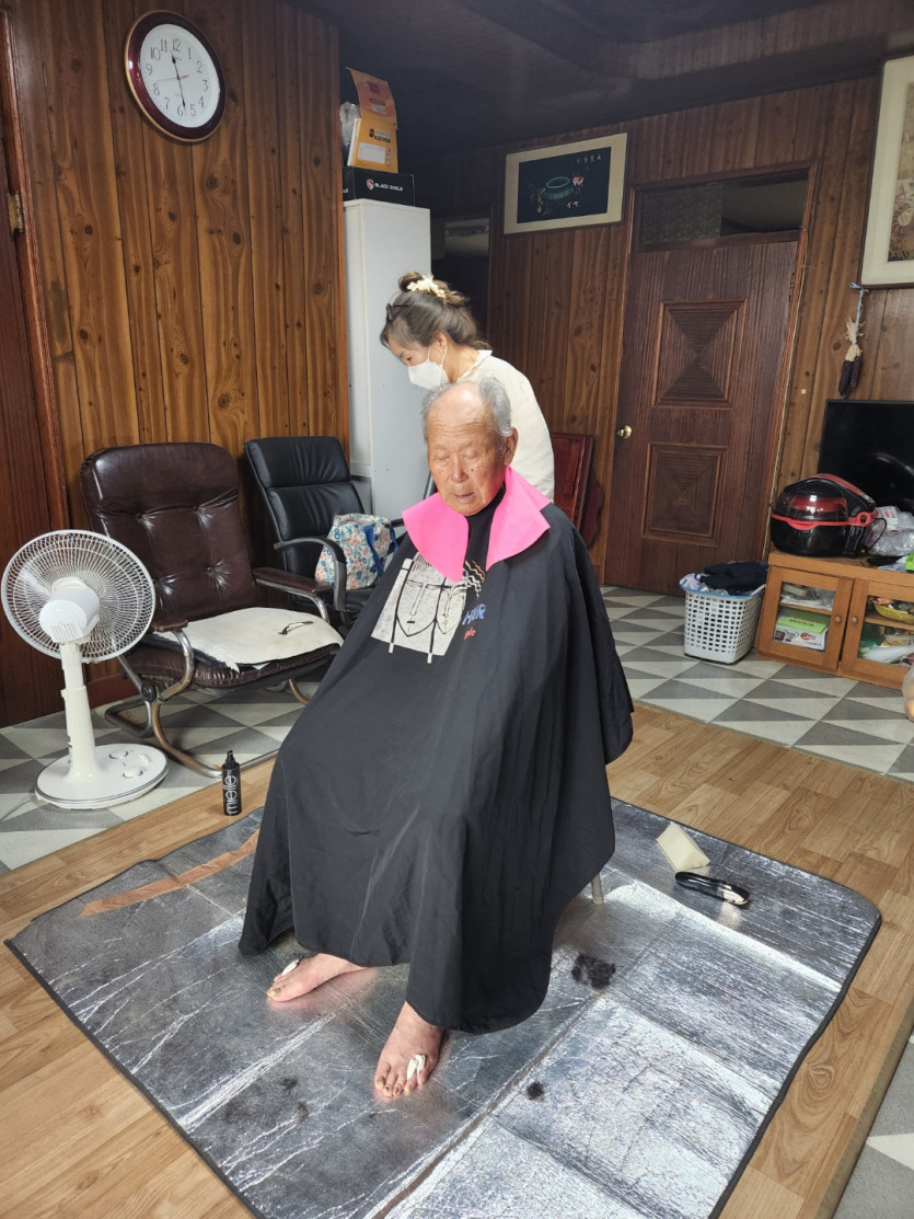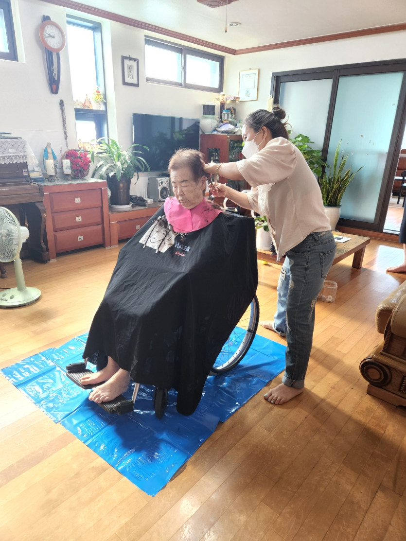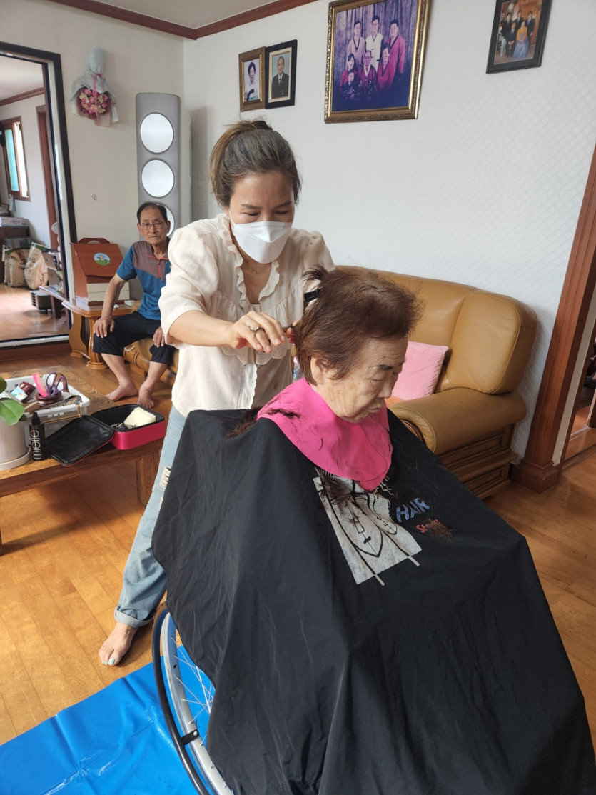 커트하시고 이뻐졌다 하니 좋아하시는 어르신들을 뵈오니 저 또한 기쁘고...감사했습니다... 함께 동행하며 뒷마무리도 해주시고,,, 어르신들 기분 좋아지는 수다도 해주시고 몸씻기도 도와주신 오정순선생님께도 꾸~~벅 감사를 드립니다..