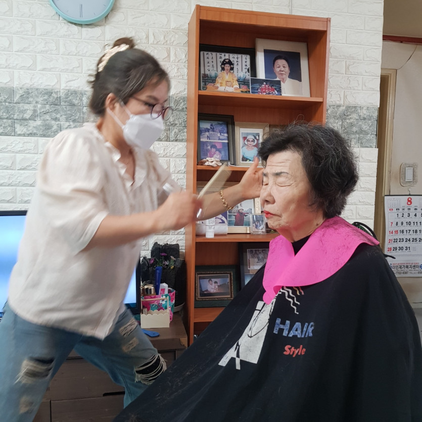 2022년 8월 22일 더위속 재능미용봉사