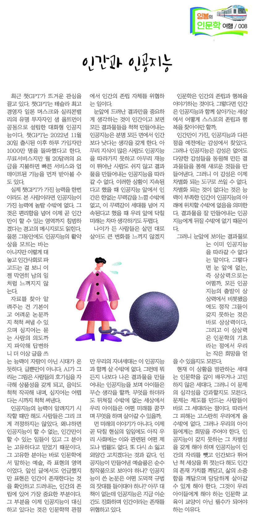 임봄의 인문학여행 8 - 인간과 인공지능 페이지 정보 작성자 관리자 댓글 0건 조회 344회 작성일 23-05-24 16:10 본문 여덟번째 이야기-인간과 인공지능 목록 목록 이전글세상에서 가장 단단한 추모....'유골 다이아몬드'를 아십니까? 23.05.25 다음글임봄의 인문학여행 7 -과학의 발전과 인문학 23.05.18 댓글 0 댓글목록 등록된 댓글이 없습니다.