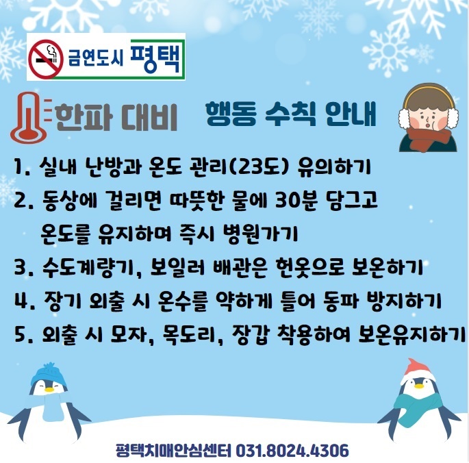 <★금연도시 평택, 치매안심센터 한파 특보 대비행동 수칙안내드립니다.>