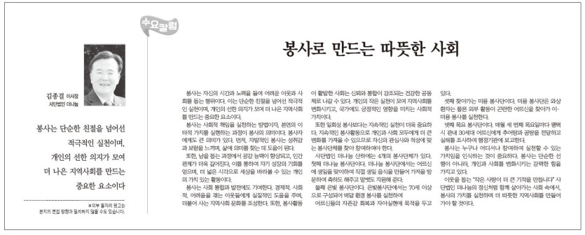봉사로 만드는 따뜻한 사회